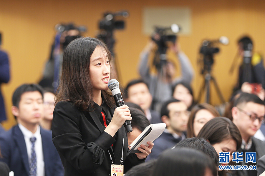 十三屆全國人大二次會議新聞中心3月9日(星期六)15時在梅地亞中心新聞發(fā)布廳舉行記者會,邀請國務(wù)院國資委主任肖亞慶,副主任翁杰明,秘書長、新聞發(fā)言人彭華崗就“國有企業(yè)改革發(fā)展”相關(guān)問題回答中外記者提問。圖為中國證券報全媒體記者提問。新華網(wǎng)/中國政府網(wǎng) 劉廈 攝