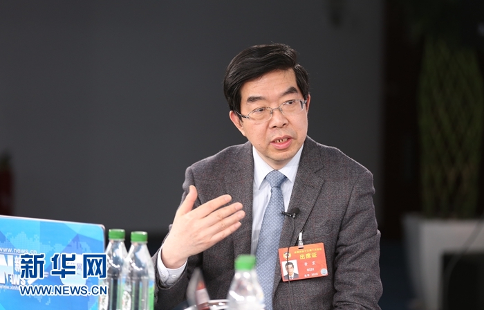 3月9日,全國政協(xié)委員、上海交通大學(xué)副校長黃震做客新華網(wǎng)2019全國兩會特別報道。新華網(wǎng) 毛嘉煒 攝