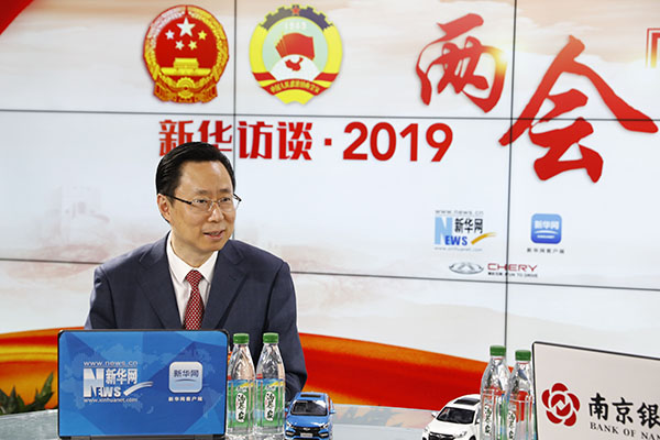 3月9日,全國人大代表,南京市委副書記、市長藍紹敏做客新華網(wǎng)2019全國兩會特別報道。新華網(wǎng)?唐楊攝