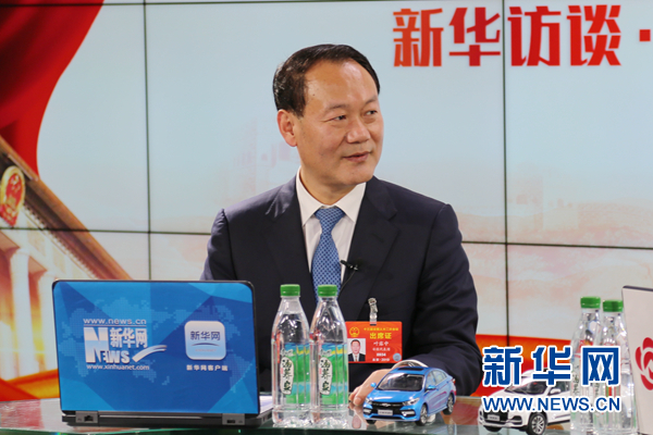 3月11日,全國(guó)人大代表、安徽省六安市市長(zhǎng)葉露中做客新華網(wǎng)。新華網(wǎng) 毛嘉偉 攝