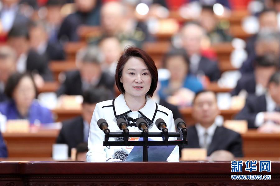 3月11日,全國(guó)政協(xié)十三屆二次會(huì)議在北京人民大會(huì)堂舉行第四次全體會(huì)議。這是李慧瓊委員作大會(huì)發(fā)言。 新華社記者 丁海濤 攝