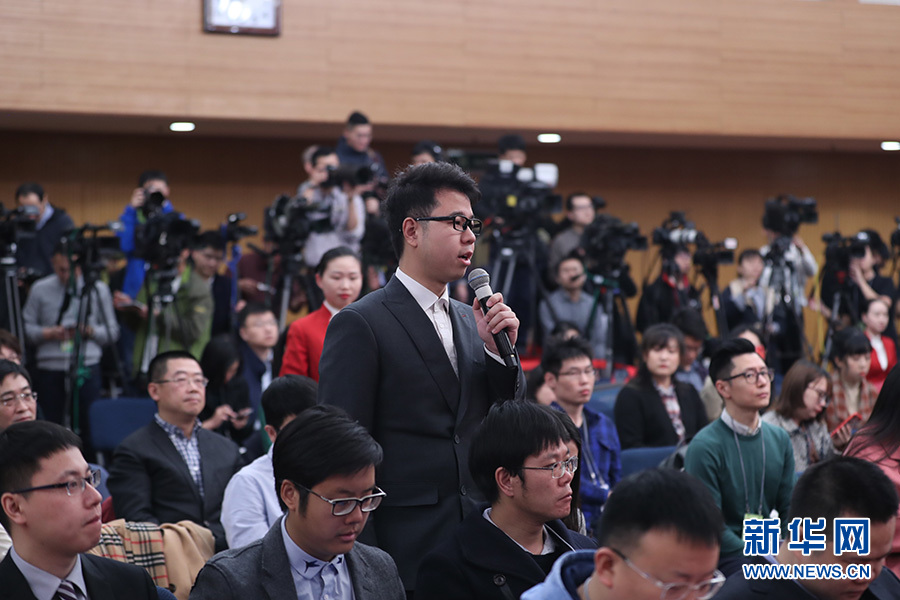 十三屆全國人大二次會議新聞中心3月11日(星期一)8時(shí)45分在梅地亞中心新聞發(fā)布廳舉行記者會,邀請科技部部長王志剛、副部長李萌、戰(zhàn)略規(guī)劃司司長許倞、政策法規(guī)與創(chuàng)新體系建設(shè)司司長賀德方、資源配置與管理司司長張曉原就“加快建設(shè)創(chuàng)新型國家”相關(guān)問題回答中外記者提問。圖為新華社記者提問。新華網(wǎng)/中國政府網(wǎng) 劉廈 攝