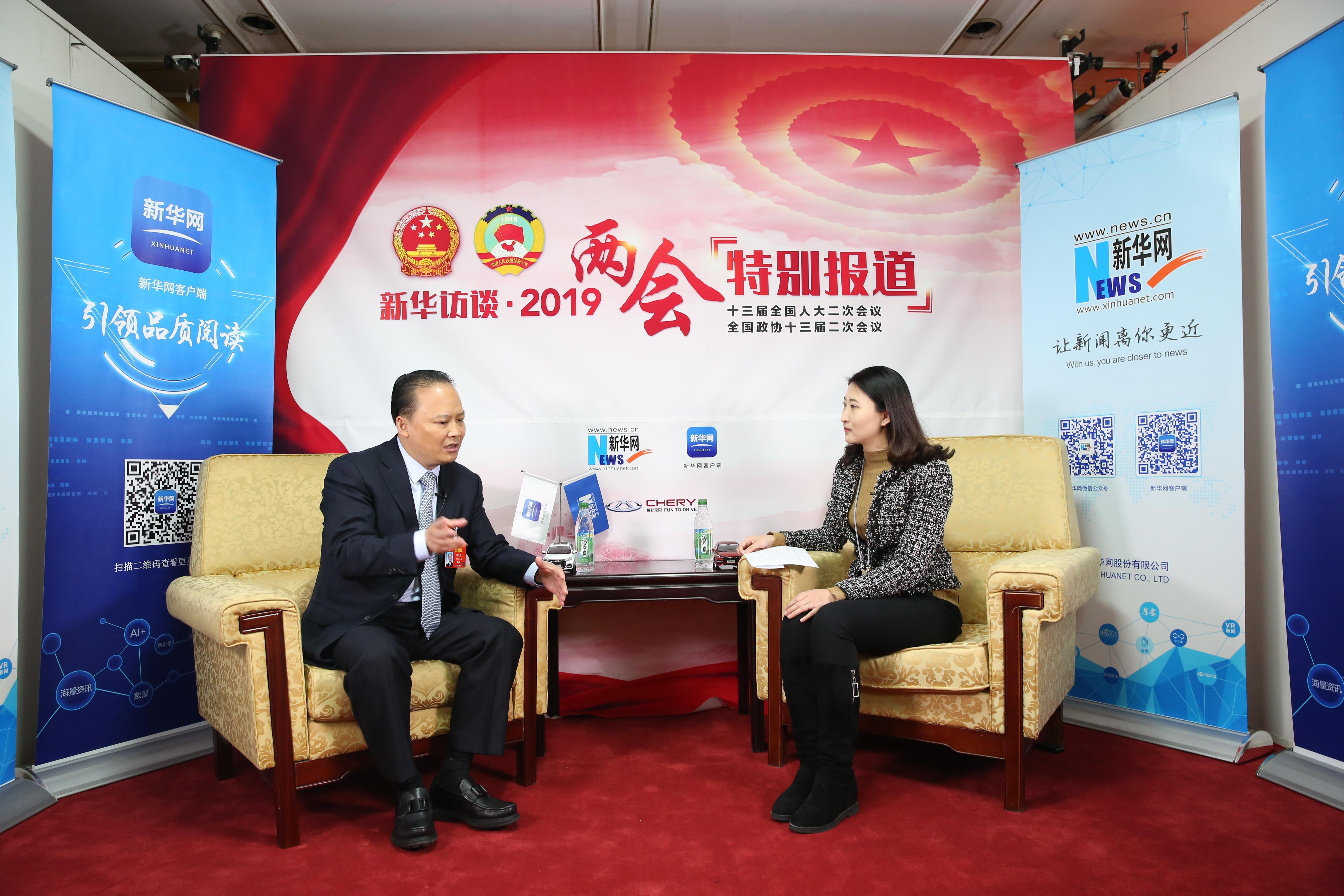 全國人大代表、通威集團董事局主席劉漢元(左)做客新華網(wǎng)2019年全國兩會訪談。