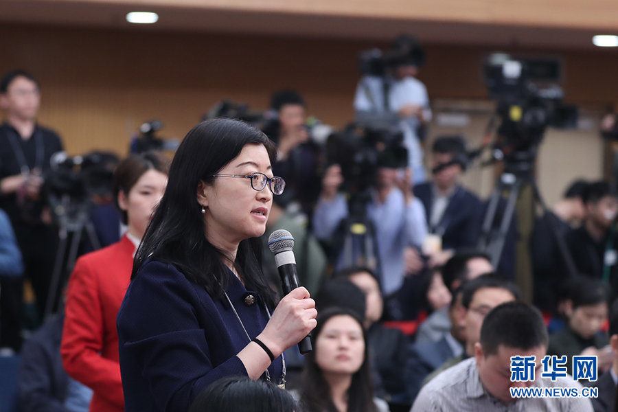 十三屆全國人大二次會議新聞中心于3月11日(星期一)15時在梅地亞中心新聞發(fā)布廳舉行記者會,邀請生態(tài)環(huán)境部部長李干杰就“打好污染防治攻堅戰(zhàn)”相關問題回答中外記者提問。圖為光明日報全媒體記者提問。新華網/中國政府網 劉廈 攝