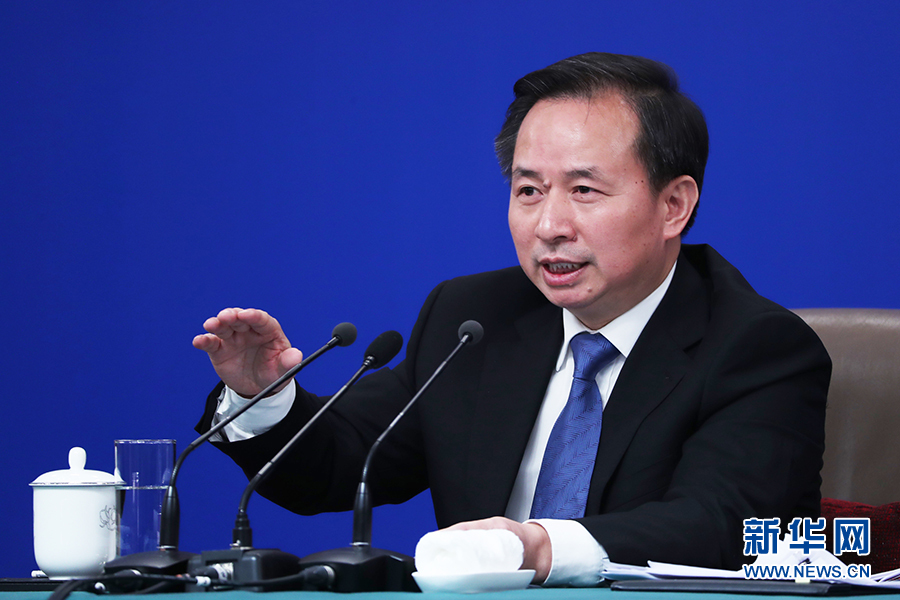 十三屆全國人大二次會議新聞中心于3月11日(星期一)15時在梅地亞中心新聞發(fā)布廳舉行記者會,邀請生態(tài)環(huán)境部部長李干杰就“打好污染防治攻堅戰(zhàn)”相關(guān)問題回答中外記者提問。圖為李干杰回答記者提問。新華網(wǎng)/中國政府網(wǎng) 劉廈 攝