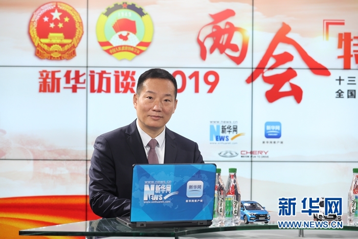 3月14日,全國人大代表、聯(lián)泓新材料科技股份有限公司董事長鄭月明做客新華網(wǎng)2019全國兩會特別報道。新華網(wǎng) 郭小天 攝