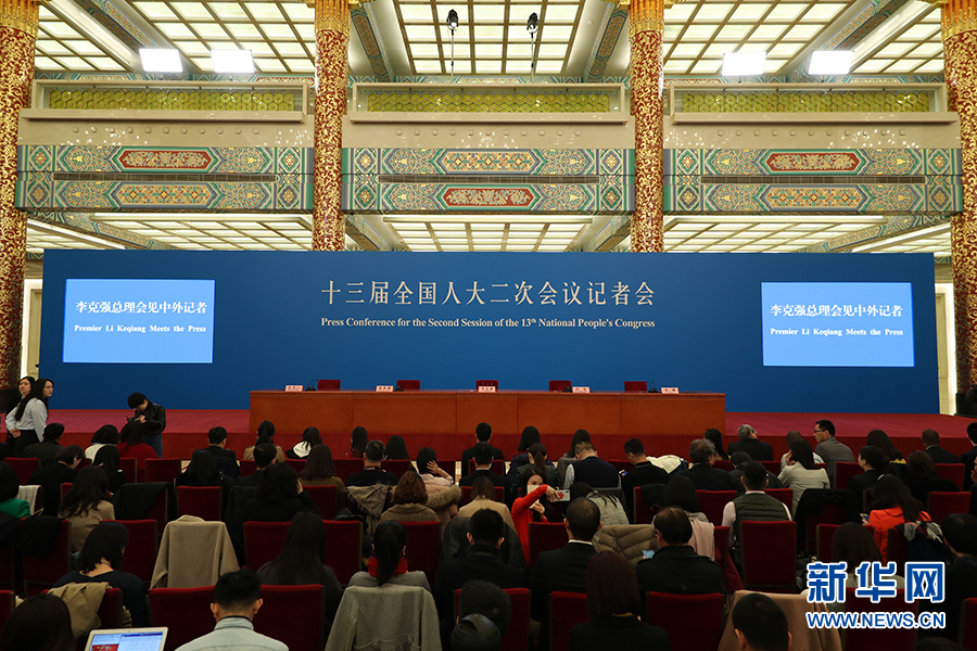 3月15日上午十三屆全國人大二次會(huì)議閉幕后,國務(wù)院總理李克強(qiáng)在人民大會(huì)堂三樓金色大廳會(huì)見采訪十三屆全國人大二次會(huì)議的中外記者并回答記者提出的問題。圖為記者會(huì)現(xiàn)場。新華網(wǎng)/中國政府網(wǎng) 劉廈 攝