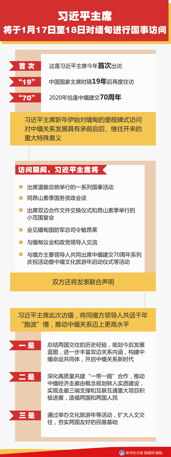 羅照輝表示,習近平主席此次訪緬,將同緬方領導人共話千年“胞波”情,同譜合作新華章,提升政治關系定位,深化互聯(lián)互通合作,推進中緬經(jīng)濟走廊建設,推動中緬關系邁上更高水平。一是總結兩國交往的歷史經(jīng)驗,規(guī)劃今后發(fā)展藍圖,進一步豐富雙邊關系內涵,構建中緬命運共同體,開啟中緬關系新時代。二是深化高質量共建“一帶一路”合作,推動中緬經(jīng)濟走廊由概念規(guī)劃轉入實質建設,實現(xiàn)走廊三端支撐和互聯(lián)互通重大項目積極進展,造福兩國和兩國人民。三是通過舉辦文化旅游年等活動,擴大人文交往,夯實兩國友好的民意基礎。相信在雙方共同努力下,習近平主席新年伊始對緬甸的里程碑式訪問必將取得圓滿成功,在中緬友好交往史上留下濃墨重彩的一筆。