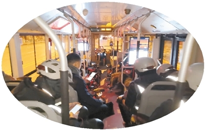 凌晨3時(shí),北京夜路公交車(chē)上坐滿(mǎn)代駕司機(jī)。本報(bào)記者 高 喬攝