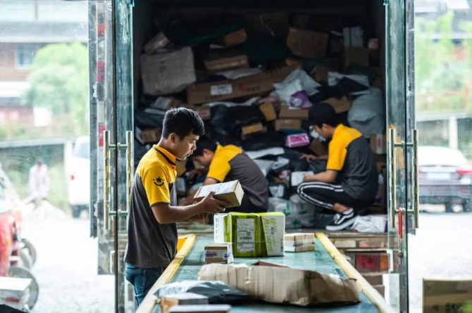 2019年5月24日,快遞員在貴州省雷山縣“通村村”調(diào)度中心分揀包裹 陶亮 攝