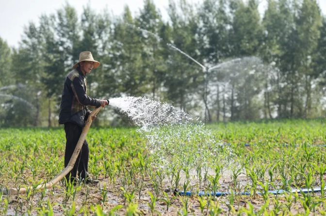 內(nèi)蒙古東部地區(qū)一名農(nóng)民在灌溉玉米秧苗 連振 攝