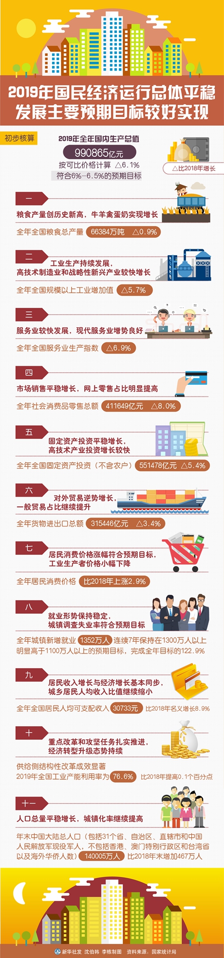 “國(guó)民經(jīng)濟(jì)運(yùn)行總體平穩(wěn)、穩(wěn)中有進(jìn),發(fā)展質(zhì)量穩(wěn)步提升,主要預(yù)期目標(biāo)較好實(shí)現(xiàn),為全面建成小康社會(huì)奠定堅(jiān)實(shí)基礎(chǔ)。”國(guó)家發(fā)展改革委副主任兼國(guó)家統(tǒng)計(jì)局局長(zhǎng)寧吉喆評(píng)價(jià)說(shuō)。
