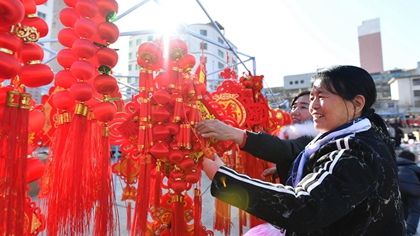 1月21日,在吉林省舒蘭市小城鎮(zhèn)四合村南陽屯,小城鎮(zhèn)黨委書記王閱(右)詢問民宿店主春節(jié)備貨情況。新華社記者 張楠 攝