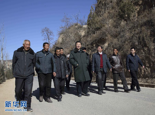 2015年2月中旬,習近平到陜西看望慰問群眾,特意找來當年陜甘寧革命老區(qū)所屬范圍的市縣領(lǐng)導人,一起開了陜甘寧革命老區(qū)脫貧致富座談會,了解情況,明確思路,推進工作。
