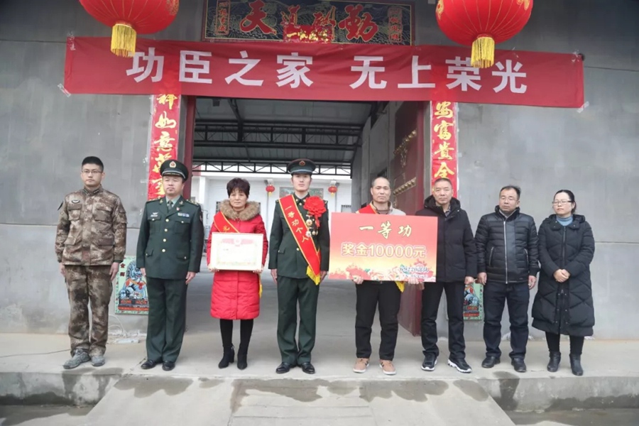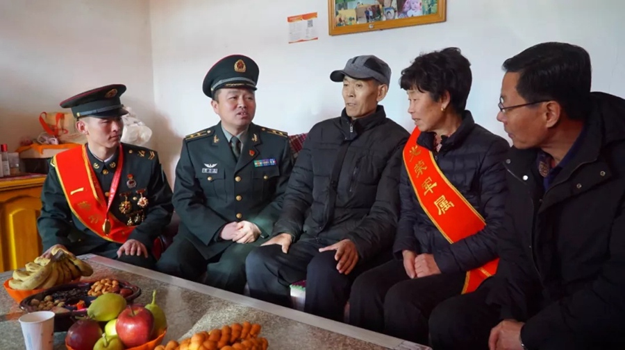 送喜報(bào)干部在一等功臣張德云家進(jìn)行慰問