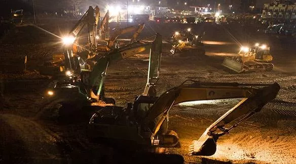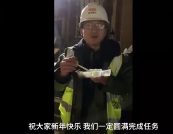昨日除夕,上百臺機械在施工現(xiàn)場同時開挖,工人們連晚飯也只是站在馬路邊上草草解決,又繼續(xù)投入戰(zhàn)斗。
