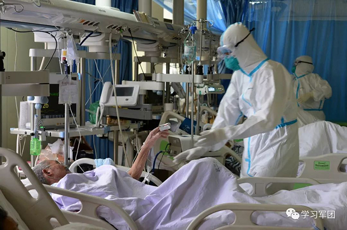 1月27日上午,海軍軍醫(yī)大學(xué)醫(yī)療隊(duì)醫(yī)護(hù)人員在漢口醫(yī)院重癥監(jiān)護(hù)室對(duì)新型冠狀病毒感染的肺炎患者進(jìn)行救治。在患者眼中,醫(yī)護(hù)人員就是他們的“救星”。解放軍報(bào)記者范顯海攝