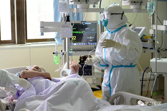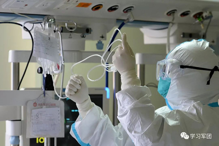 1月27日上午,海軍軍醫(yī)大學(xué)醫(yī)療隊(duì)醫(yī)護(hù)人員在漢口醫(yī)院重癥監(jiān)護(hù)室對(duì)新型冠狀病毒感染的肺炎患者進(jìn)行救治。醫(yī)護(hù)人員密切關(guān)注患者病情,根據(jù)變化調(diào)整輸液速度。解放軍報(bào)記者范顯海攝
