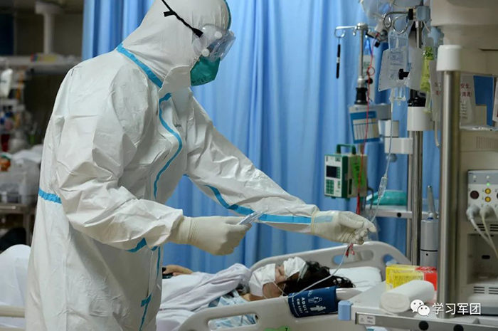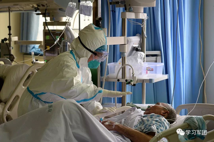 1月27日上午,海軍軍醫(yī)大學(xué)醫(yī)療隊(duì)醫(yī)護(hù)人員在漢口醫(yī)院重癥監(jiān)護(hù)室對(duì)新型冠狀病毒感染的肺炎患者進(jìn)行救治。醫(yī)護(hù)人員加強(qiáng)巡視,觀察輸液滴數(shù)。解放軍報(bào)記者范顯海攝