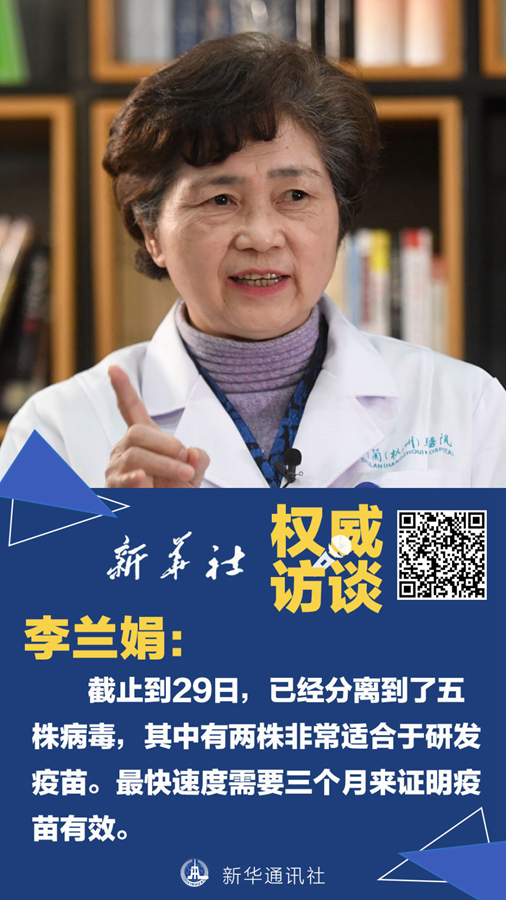 李蘭娟:研發(fā)疫苗第一步是要獲得病毒株。目前,我們已經(jīng)分離到了五株病毒,其中有兩株非常適合于研發(fā)疫苗。分離到種子株之后,還要把種子株的病毒在細(xì)胞中培養(yǎng),讓它長(zhǎng)到一定的量,這就需要一個(gè)多月。大量的細(xì)胞病毒拿到了,還要進(jìn)行滅活,并對(duì)它的免疫原性如何,能不能預(yù)防、有沒(méi)有效果、有沒(méi)有毒力、會(huì)不會(huì)造成新的感染等開(kāi)展實(shí)驗(yàn)。