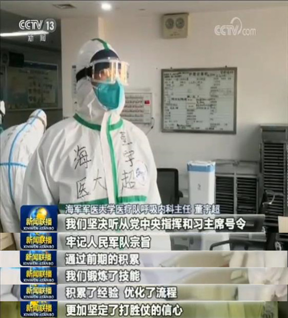 習(xí)主席向全軍發(fā)出的號(hào)令,給全軍官兵以極大鼓舞和有力動(dòng)員。疫情發(fā)生后,人民軍隊(duì)堅(jiān)決落實(shí)習(xí)主席重要指示,在黨中央和中央軍委統(tǒng)一指揮下,聞令而出、迅疾行動(dòng)。我軍迅速啟動(dòng)聯(lián)防聯(lián)控工作機(jī)制,緊急抽組精兵強(qiáng)將奔赴疫情防控第一線,各項(xiàng)救治工作有力有序有效展開。