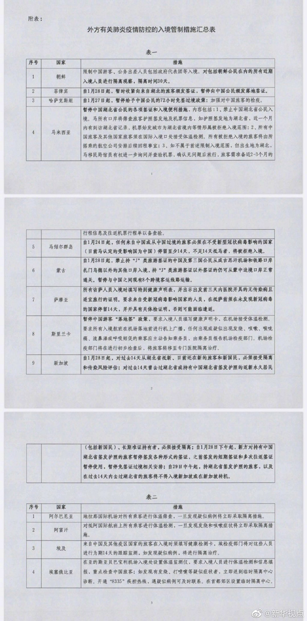 據(jù)外交部“領(lǐng)事直通車”微信公眾號(hào)消息,為防控新型冠狀病毒感染的肺炎疫情,部分國(guó)家已在口岸采取了相應(yīng)的入境管制措施(詳見附表,供參考)。外交部領(lǐng)事司提醒中國(guó)公民根據(jù)自身健康狀況合理安排出行,詳細(xì)了解并遵守目的地國(guó)有關(guān)入境規(guī)定。外交部全球領(lǐng)事保護(hù)與服務(wù)應(yīng)急熱線:+86-10-12308,+86-10-59913991。(記者成欣)?