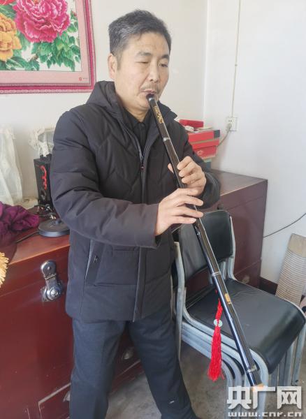崔建存吹洞簫(央廣記者 柴華 攝)