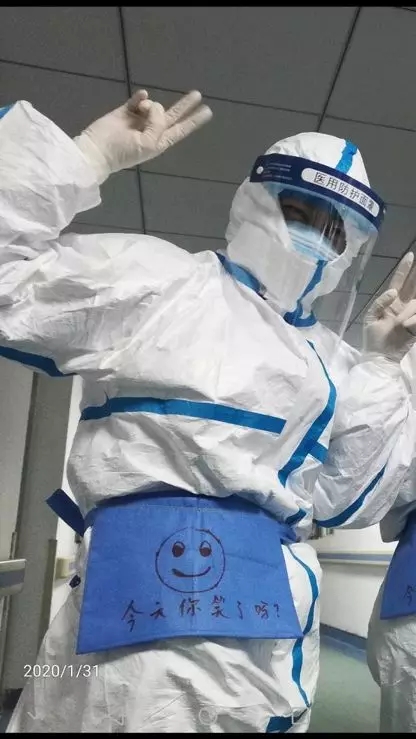 46歲的金銀潭醫(yī)院南四病區(qū)護(hù)士長吳靜,給科室護(hù)士腰間藍(lán)色袋子畫的笑臉
