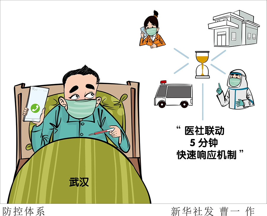 武漢青山區(qū)鋼花村街110社區(qū)書記馮丹介紹稱,鋼花村街制定了“醫(yī)社聯(lián)動(dòng)5分鐘快速響應(yīng)機(jī)制”:遇到有居民反映相關(guān)癥狀時(shí),社區(qū)工作人員第一時(shí)間通報(bào)社區(qū)衛(wèi)生服務(wù)中心,值班醫(yī)生5分鐘內(nèi)電話聯(lián)系疑似患者或家屬,作出是否需要上門診斷或轉(zhuǎn)診的預(yù)判,并反饋社區(qū);醫(yī)生判斷不需上門的,由社區(qū)網(wǎng)格員指導(dǎo)居民居家觀察;醫(yī)生判斷需要上門的,則由社區(qū)申請應(yīng)急車,先到社區(qū)衛(wèi)生服務(wù)中心接醫(yī)護(hù)人員,再會(huì)同社區(qū)工作者上門,將患者及醫(yī)護(hù)人員送往發(fā)熱門診。