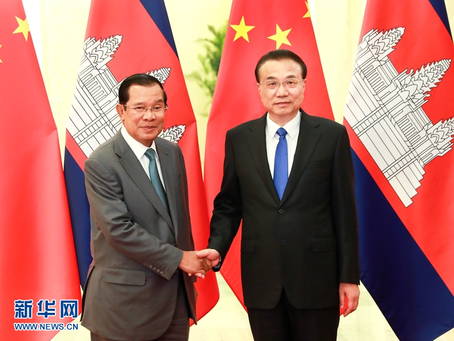 2月5日,國務院總理李克強在北京人民大會堂會見柬埔寨首相洪森。 新華社記者 龐興雷 攝