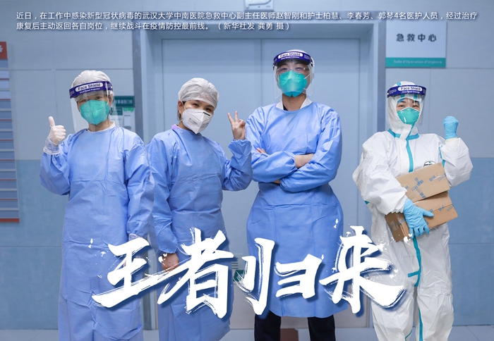 中南醫(yī)院急救中心副主任夏劍說,4名醫(yī)護人員工作中感染新型冠狀病毒,康復后不約而同重返崗位,這不僅體現(xiàn)了醫(yī)護人員無私奉獻精神,一定程度緩解科室醫(yī)護人員壓力,也向患者傳遞了戰(zhàn)勝疾病的信心。