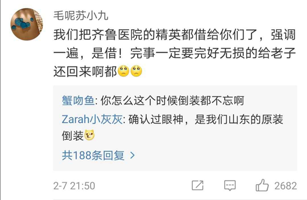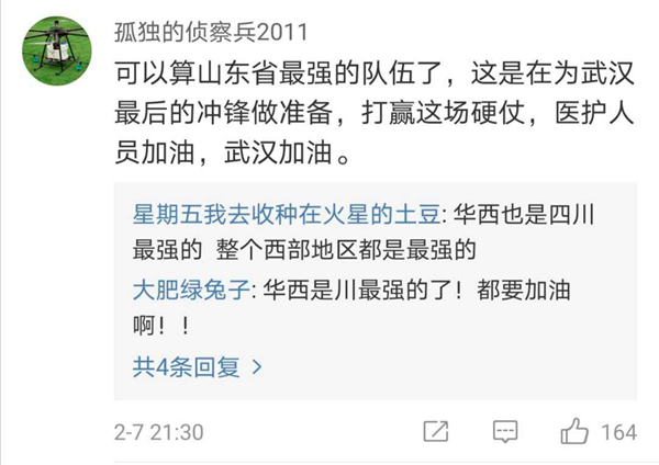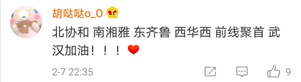 有網(wǎng)友表示,北協(xié)和、南湘雅、東齊魯、西華西,中國醫(yī)療界最頂尖的王炸帶上各省份的天團(tuán)會師武漢!今天看到最戳心的一句話是:全村的龍已把最硬的麟給你,哪怕自己也傷痕累累,所以,武漢,加油!