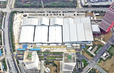 2月8日,從空中俯瞰武漢客廳方艙醫(yī)院全景。新華社記者 李賀攝