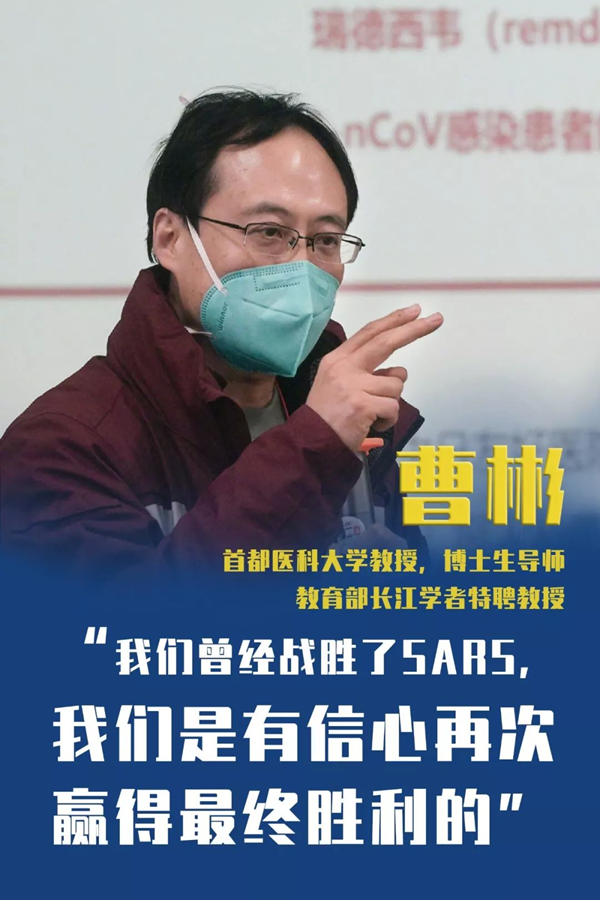 首都醫(yī)科大學(xué)教授、博士生導(dǎo)師,教育部長江學(xué)者特聘教授,中日友好醫(yī)院副院長曹彬在疫情暴發(fā)前期就作為衛(wèi)健委特派專家多次奔赴武漢一線。當(dāng)他得知自己所屬的中日友好醫(yī)院將召集醫(yī)療隊(duì)共赴戰(zhàn)場時,他在呼吸中心的微信群里發(fā)了這樣的信息:“我在武漢等你”。受他感召,中日友好醫(yī)院呼吸中心的同事們紛紛踴躍報名!
