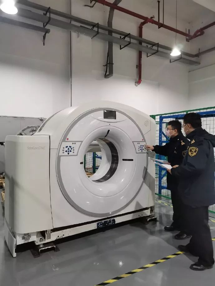 2月7日,重慶海關(guān)所屬西永海關(guān)快速通關(guān)一臺重慶明峰醫(yī)療有限公司研發(fā)的CT機,該臺CT機將用于組裝成“方舟”CT系統(tǒng)(新型應(yīng)急專用CT裝置)后發(fā)送到武漢,安裝在方艙醫(yī)院,用于新冠肺炎疑似病例篩查。