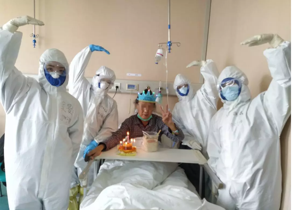 易老先生對(duì)我們說(shuō):“你們讓我度過(guò)了一個(gè)別開(kāi)生面,永生難忘的76歲壽誕,讓我重拾戰(zhàn)勝病毒的信心。雖然你們穿著防護(hù)服,戴著面罩,看不清你們的臉,但我相信你們都是最美的白衣天使?!?/p>