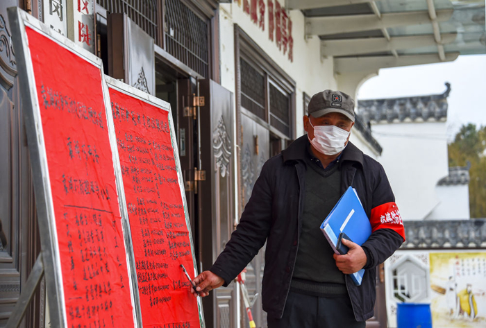 第二天,村干部就忙碌起來(lái)。每家每戶走訪登記,摸排武漢返鄉(xiāng)人員并檢測(cè)體溫,開(kāi)展防疫知識(shí)宣傳,將偷偷進(jìn)村的外來(lái)人員勸離……