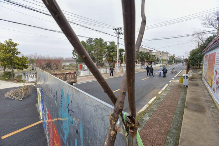 ↑袁湖村的鄉(xiāng)間道路上,少有村民出行。新華社記者 胡虎虎攝
