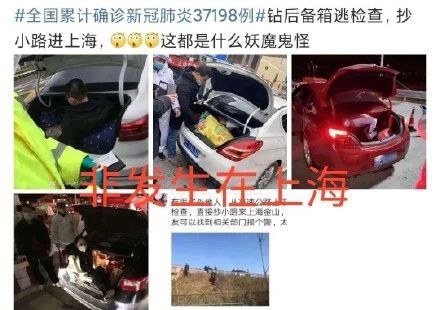 2月8日晚,網(wǎng)上流傳有多張照片,稱上海查獲多起人員藏匿于轎車后備箱以及有人跨越高速公路護(hù)欄進(jìn)入上海金山的情況。