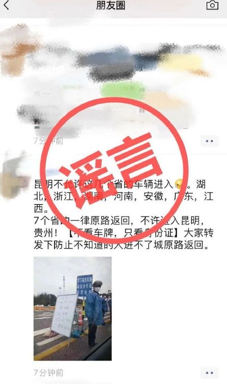 謠言七:湖北、浙江等七省車輛不允許進(jìn)昆明