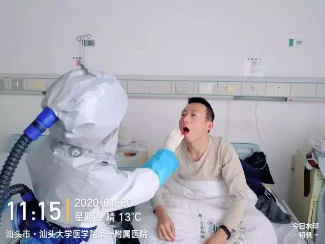 32歲的沈武富因感染新型肺炎在汕頭大學(xué)醫(yī)學(xué)院附屬第一醫(yī)院隔離治療,他用鏡頭記錄下自己的治療過(guò)程。