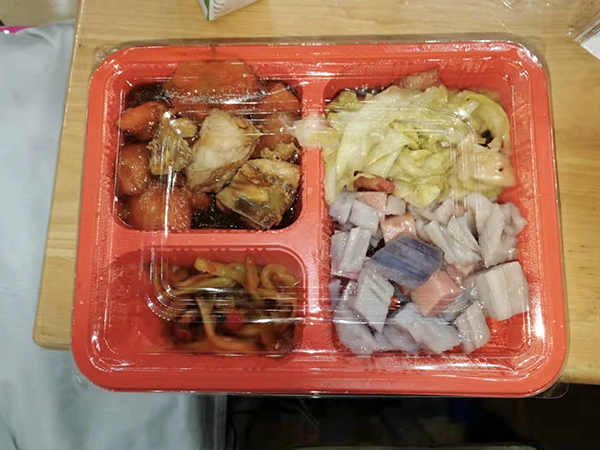 在漢江方艙治療的王漢民也已退燒多日,在女兒的遠(yuǎn)程協(xié)助下,他學(xué)會(huì)了用微信發(fā)圖片,每每拿到醫(yī)護(hù)人員分發(fā)的盒飯,他會(huì)第一時(shí)間拍下,發(fā)給女兒:“2月9日,今天早上有香蕉和牛奶,中午是蹄花,木耳炒肉和青菜,都是比較有營(yíng)養(yǎng)的?!?/p>