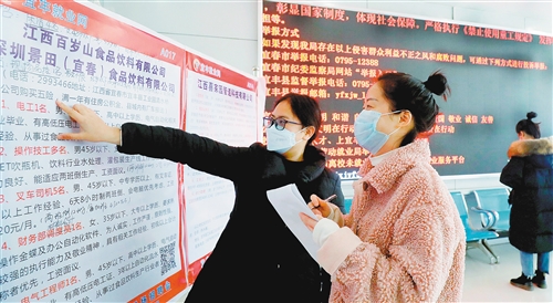 2月16日,江西省宜豐縣勞動就業(yè)局大廳,求職人員在了解招工信息。 聶云峰攝(中經視覺)