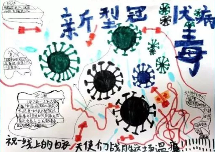 各地兒童也參與到抗疫戰(zhàn)中來,用手中的筆繪制防疫漫畫,寫抗疫詩歌、短文,錄制防疫短視頻,普及防疫知識,為一線醫(yī)務(wù)工作者加油,為打贏抗疫戰(zhàn)鼓勁。