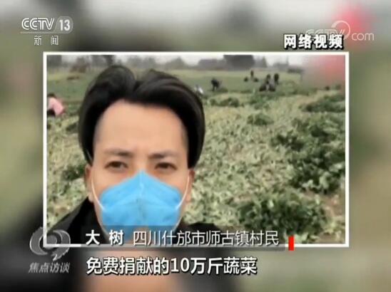 這是什邡市師古鎮(zhèn)的一個農(nóng)村網(wǎng)紅,網(wǎng)名叫大樹哥。疫情發(fā)生以后,他也想為武漢做點(diǎn)什么。他說,自己沒什么錢,但是地里有菜。