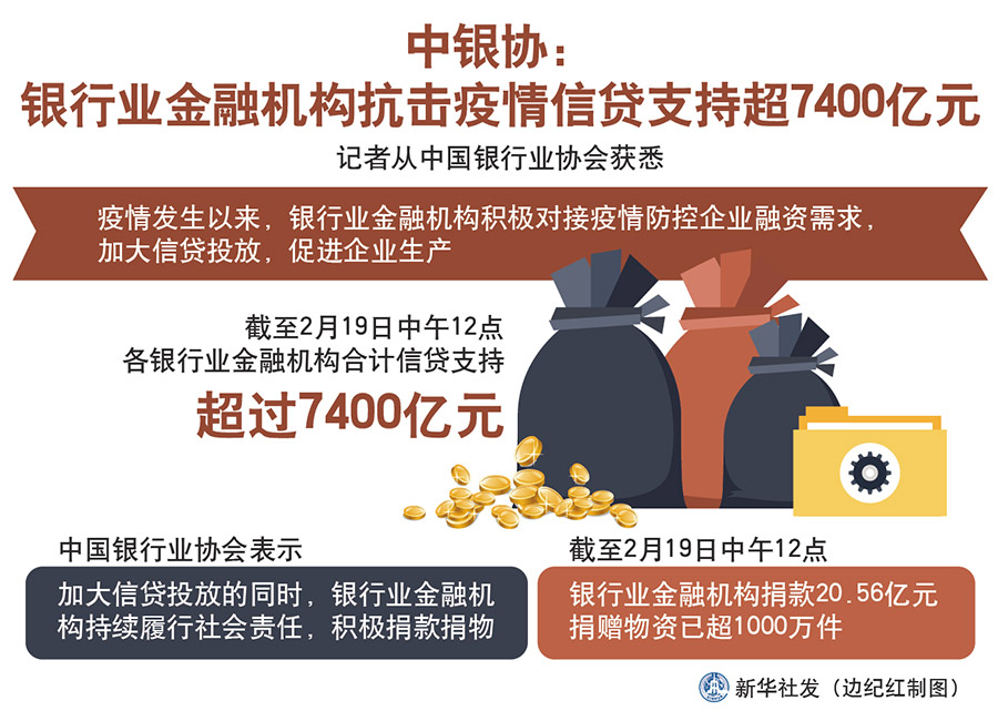 新華社北京2月20日電(記者李延霞)記者從中國銀行業(yè)協(xié)會獲悉,疫情發(fā)生以來,銀行業(yè)金融機(jī)構(gòu)積極對接疫情防控企業(yè)融資需求,加大信貸投放,促進(jìn)企業(yè)生產(chǎn)。截至2月19日中午12點(diǎn),各銀行業(yè)金融機(jī)構(gòu)合計(jì)信貸支持超過7400億元。