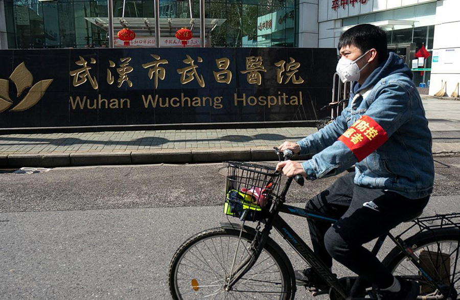 2月21日,一名市民經(jīng)過武漢市武昌醫(yī)院。(新華社記者熊琦攝)