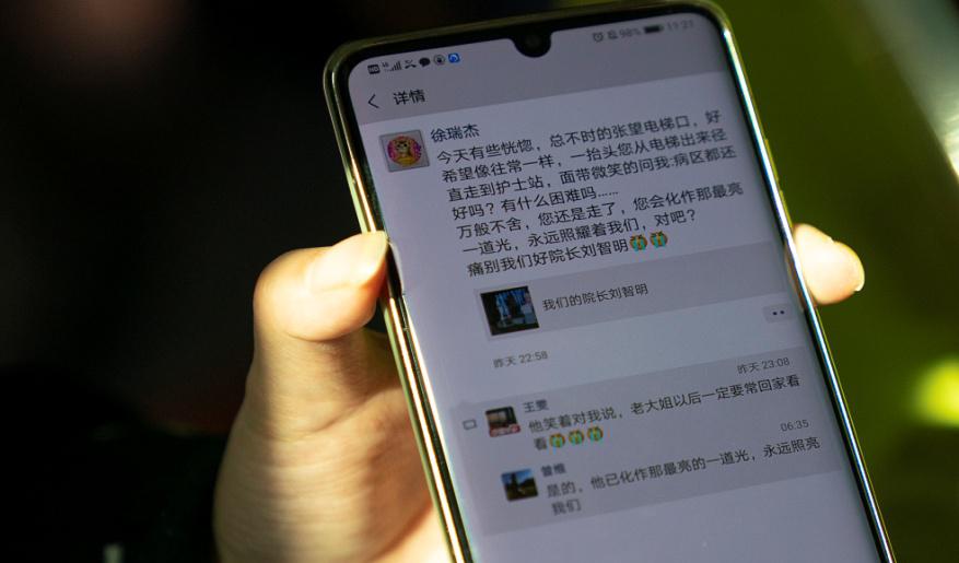 2月21日,同事在朋友圈懷念劉智明。(新華社記者熊琦攝)