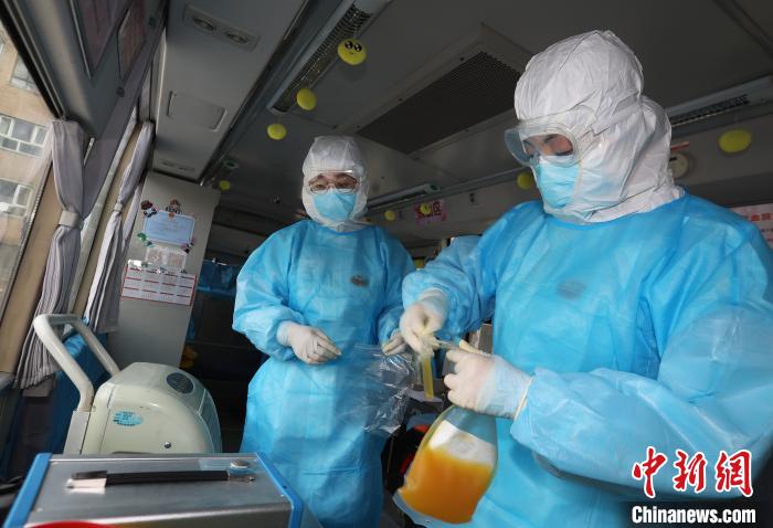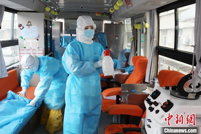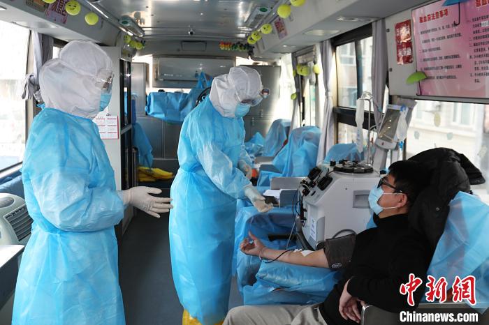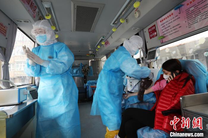 2月21日,河北省張家口市4名新冠肺炎康復(fù)者在該市中心血站采血車上成功捐獻血漿共800毫升。