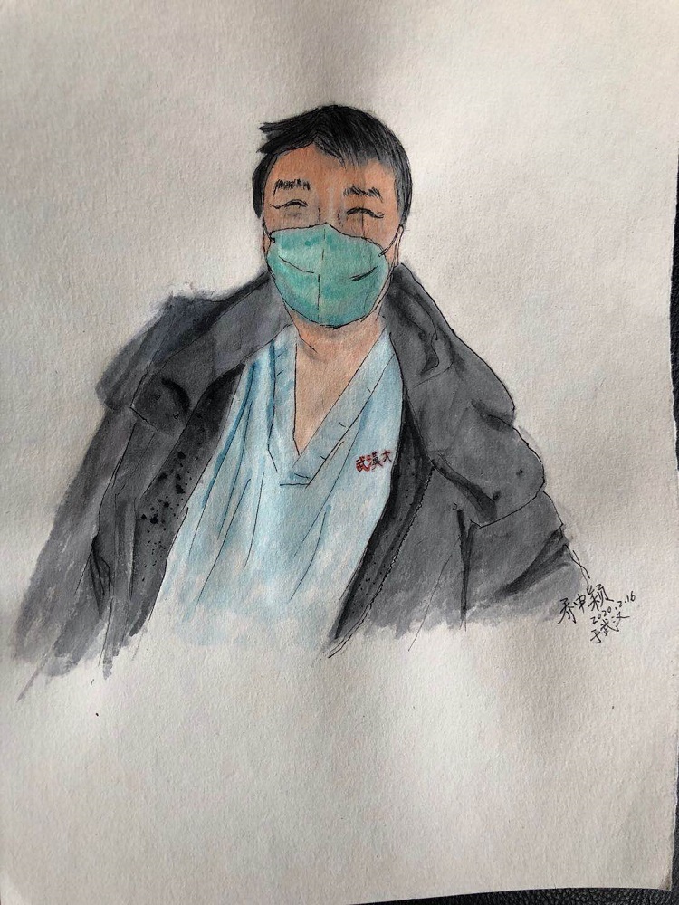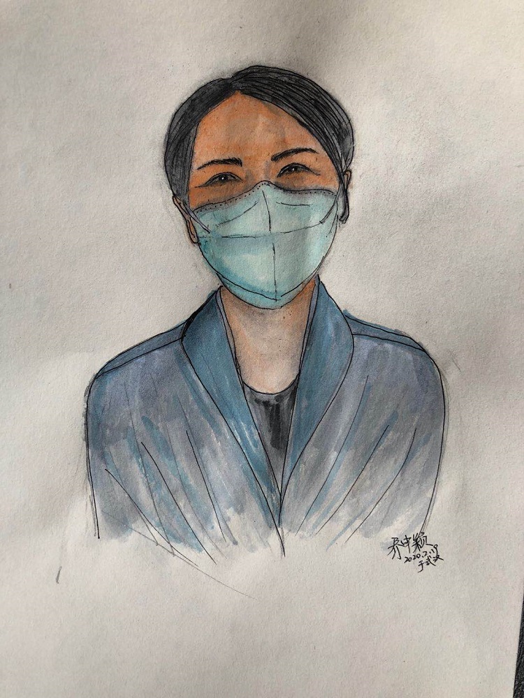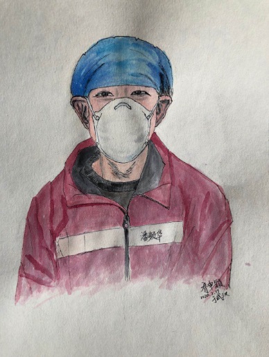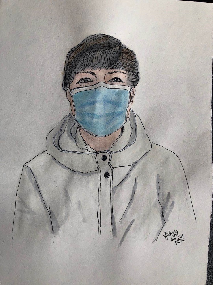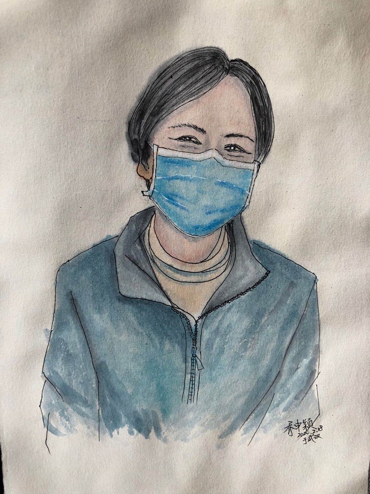 剛開始就是正常的寫稿拍視頻,隨著時間的推移,就特別想畫畫。這個城市里充滿了觸動心靈的瞬間,可能是一個笑臉,可能是一個手勢。我總覺得光是寫下來、拍下來,還遠遠不夠,只有把它畫下來,才真正能把我那一刻的感動也一起收藏起來。當(dāng)時武漢根本買不到顏料,我請同事幫忙從北京帶過來,2月16號的時候開始畫。第一個想到的就是采訪過的醫(yī)護人員的笑臉。因為大家都崩得很緊,好多醫(yī)護人員采訪中說著說著就哭了。雖然對采訪來說可能是件好事,但我總感覺很愧疚,覺得為個采訪讓人又難過一次。后來就形成一個習(xí)慣,每次我都要問一個問題:今天有沒有開心的事呀?或者說:咱換個話題,說點高興的!他們給了我各種各樣的答案,但是不管是為什么高興,那一刻他們的笑容都特別燦爛特別美好。所以我把他們的笑畫了下來,希望更多的人能看到,能從中汲取力量。